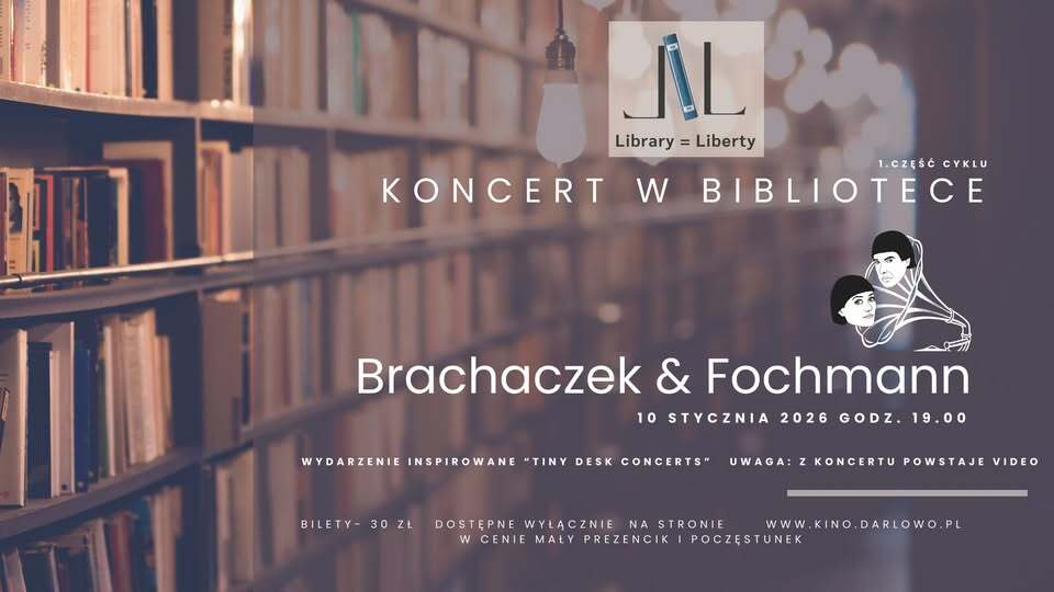 W nowym roku zaczynamy od czegoś naprawdę wyjątkowego - projektu muzycznego Library = Liberty, czyli kameralnego koncertu wśród regałów Miejskiej Biblioteki im. Agnieszki Osieckiej w Darłowie. Minimalistyczna scena, bliskość muzyków i publiczności oraz atmosfera „tiny desk concert” sprawią, że to spotkanie będzie jedyne w swoim rodzaju.