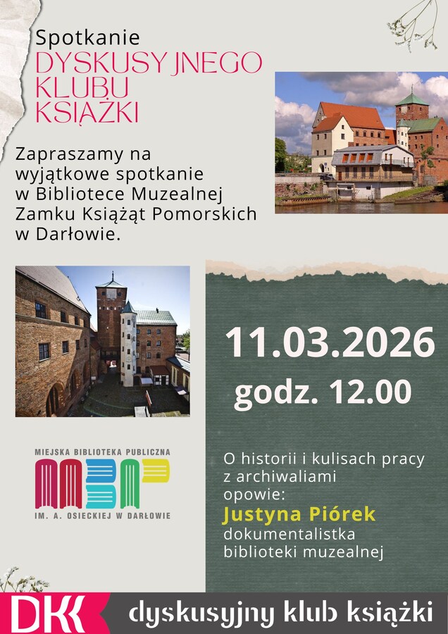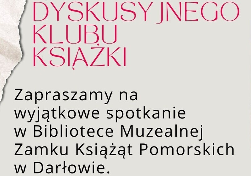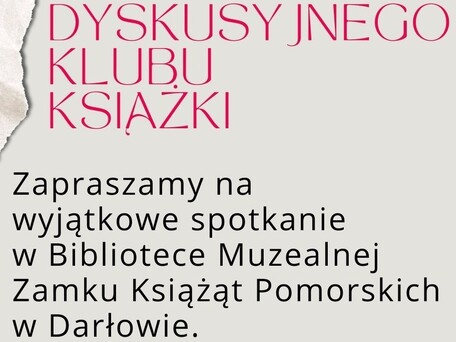 Serdecznie zapraszamy na wyjątkowe spotkanie Dyskusyjnego Klubu Książki, które odbędzie się w bibliotece muzealnej Zamku Książąt Pomorskich w Darłowie.