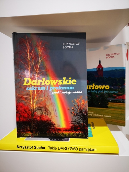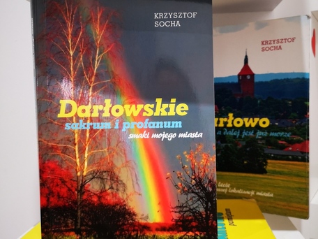 W Miejskiej Bibliotece Publicznej im. Agnieszki Osieckiej w Darłowie, w czytelni na półkach regionalnych wydawnictw leżą książki Krzysztofa Sochy – mojego młodszego kuzyna. Sięgnęłam po „Darłowskie sakrum i profanum. Smaki mojego miasta.” Ciekawa to wędrówka – po rzeczywistym i czasem zmyślonym? - świecie wyobraźni.